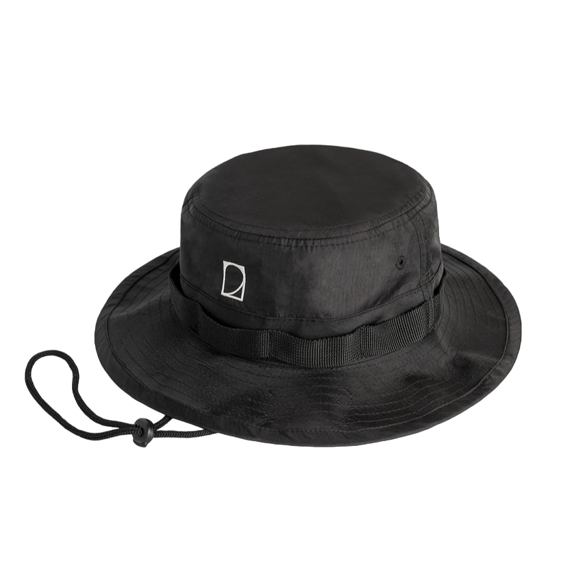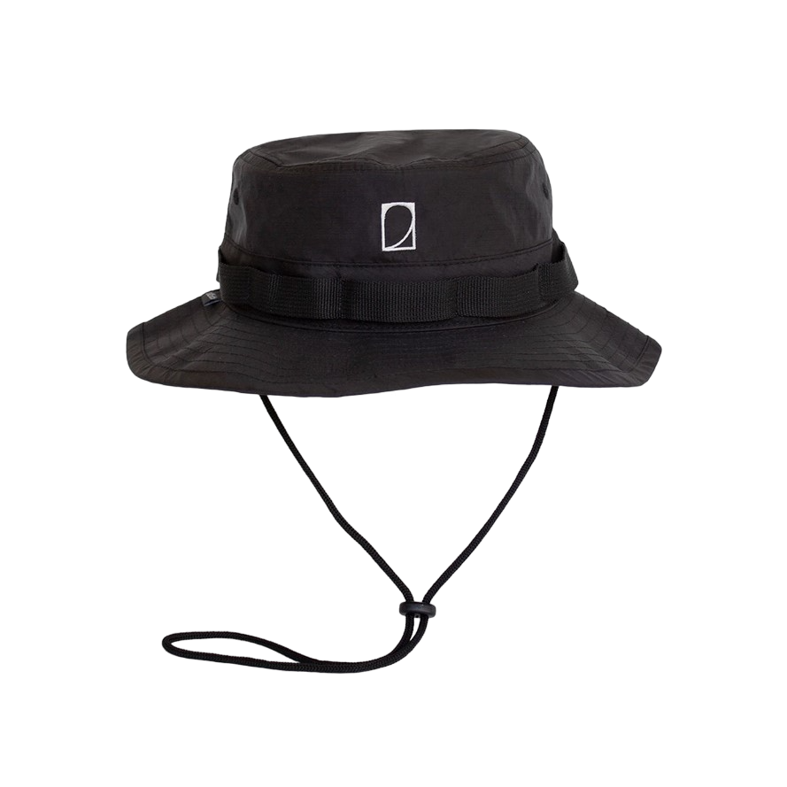 • Sombrero australiano color negro de ala mediana con tira de ajuste