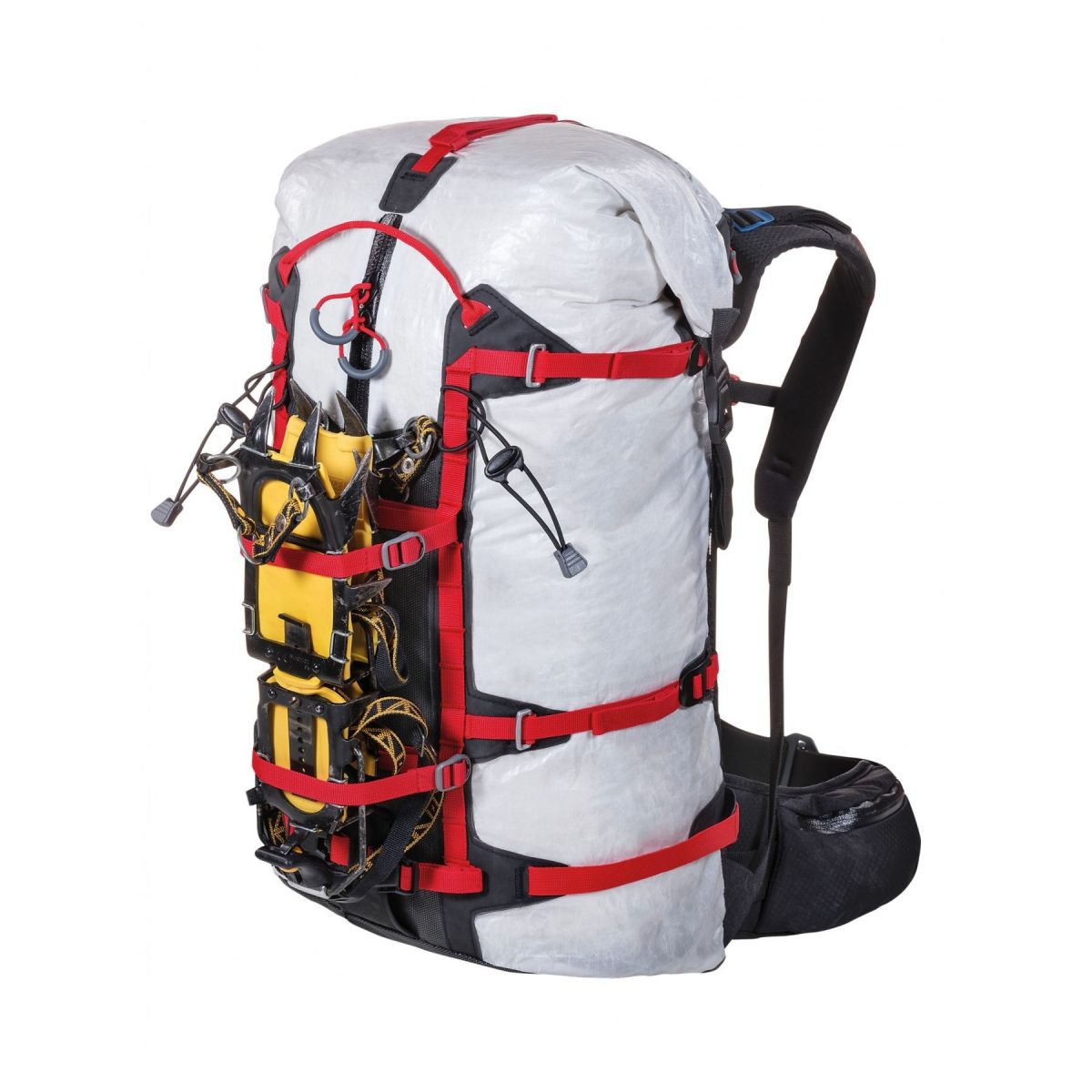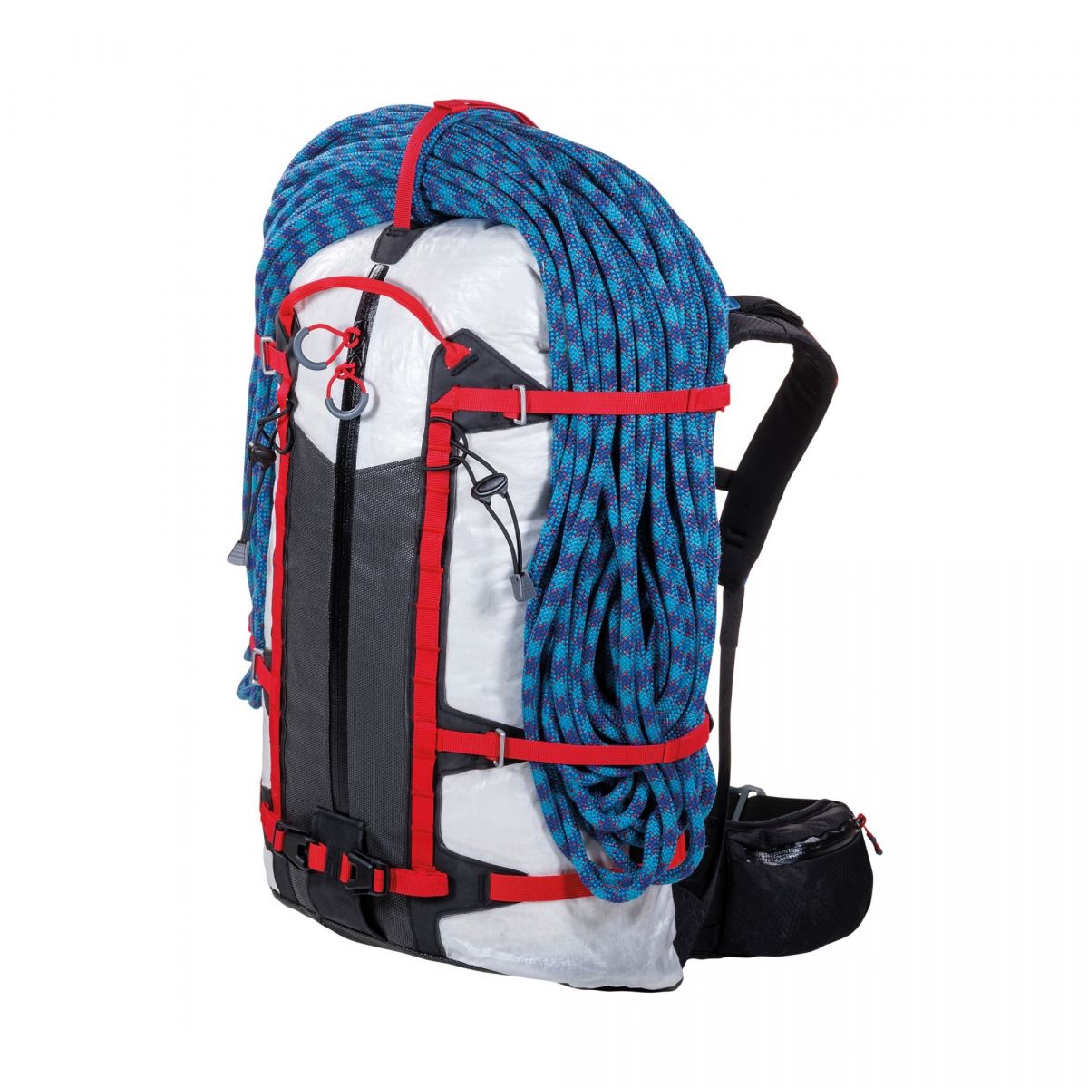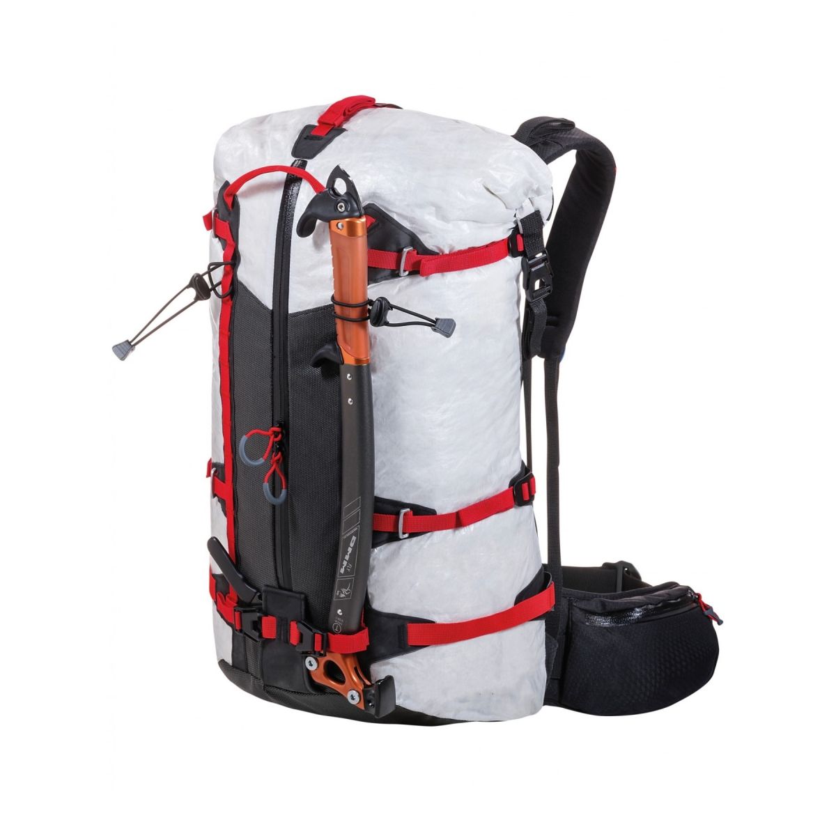 Mochila de alpinismo realizada en Dyneema® Composite Fabric, Cordura® Nylon y refuerzos de SuperFabric® para garantizar una excelente relación entre resistencia y ligereza. Esencial en todas sus partes, cuenta con un compartimento principal con un volumen racional y un sistema portamaterial externo versátil que permite transportar bien sujetados piquetas, grampones, cuerdas y mucho más. Un bolsillo trasero y otro en el cinturón lumbar completan el equipamiento para organizar el material. Diseñada para adaptarse a cualquier actividad, puede modularse en cuanto al peso y el sistema de transporte, extrayendo el cinturón lumbar y las correas adicionales: una verdadera mochila para todo en la montaña.