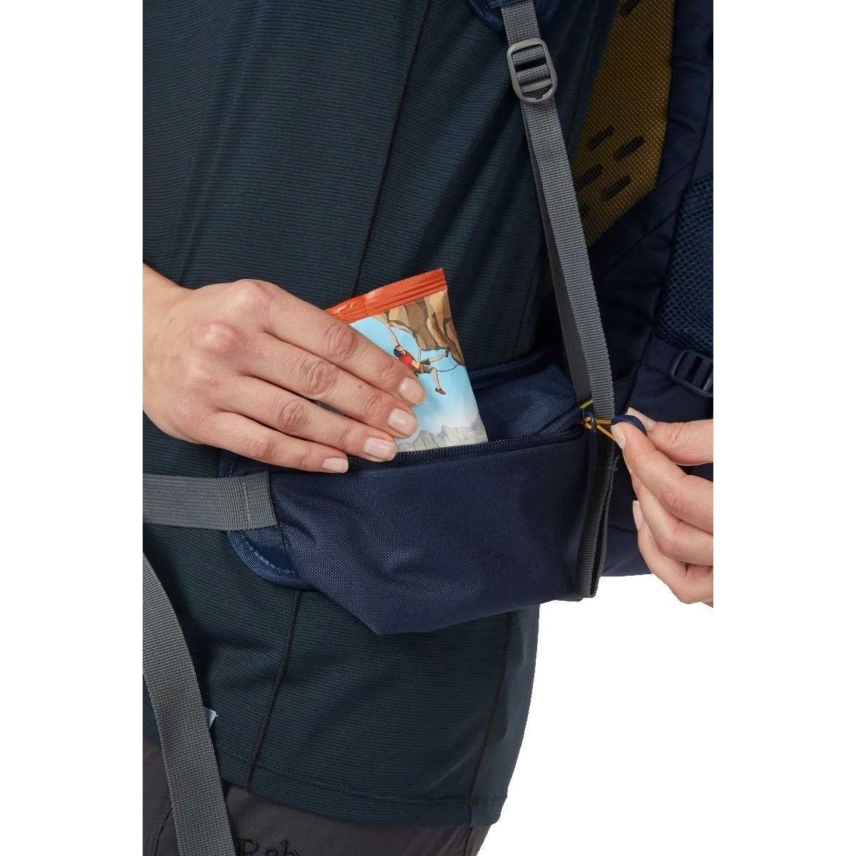 Esta compatible con una bolsa de agua de 3 litros, cuenta con dos bolsillos laterales de malla elástica para botellas de agua, para que puedas mantenerte hidratado cuando el sol pega fuerte. Hay un gran espacio de almacenamiento seguro, que incluye bolsillos con cierre en el cinturón para tener los tentempiés a mano y un bolsillo de seguridad bajo la tapa para tus objetos de valor. La práctica goma elástica frontal te permite guardar rápidamente el equipo mojado, y hay puntos de sujeción para guardar los bastones de senderismo. Cuando una lluvia amenaza con caer, puedes sacar la funda impermeable para protegerte mejor de las inclemencias del tiempo.