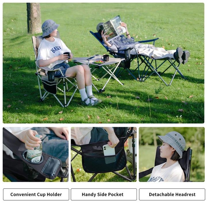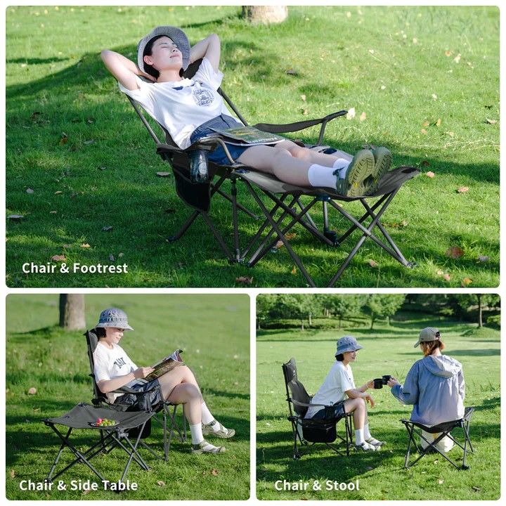 • Súper cómoda: Esta silla reclinable 2 en 1 sirve tanto de silla de camping normal para adultos como de silla reclinable con reposapiés que se activa con un botón rojo en el armazón. El respaldo ajustable permite sentarse o reclinarse, ofreciendo relajación para su cuerpo, brazos, piernas y pies.