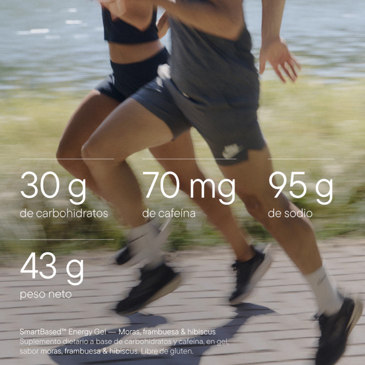 Gel formulado con 30g de carbohidratos en proporción 2:1 de glucosa:fructosa. Aporta 95mg de sodio para optimizar la absorción y la hidratación. Contiene 70mg de cafeína que mejora el estado de alerta y disminuye la percepción del esfuerzo.