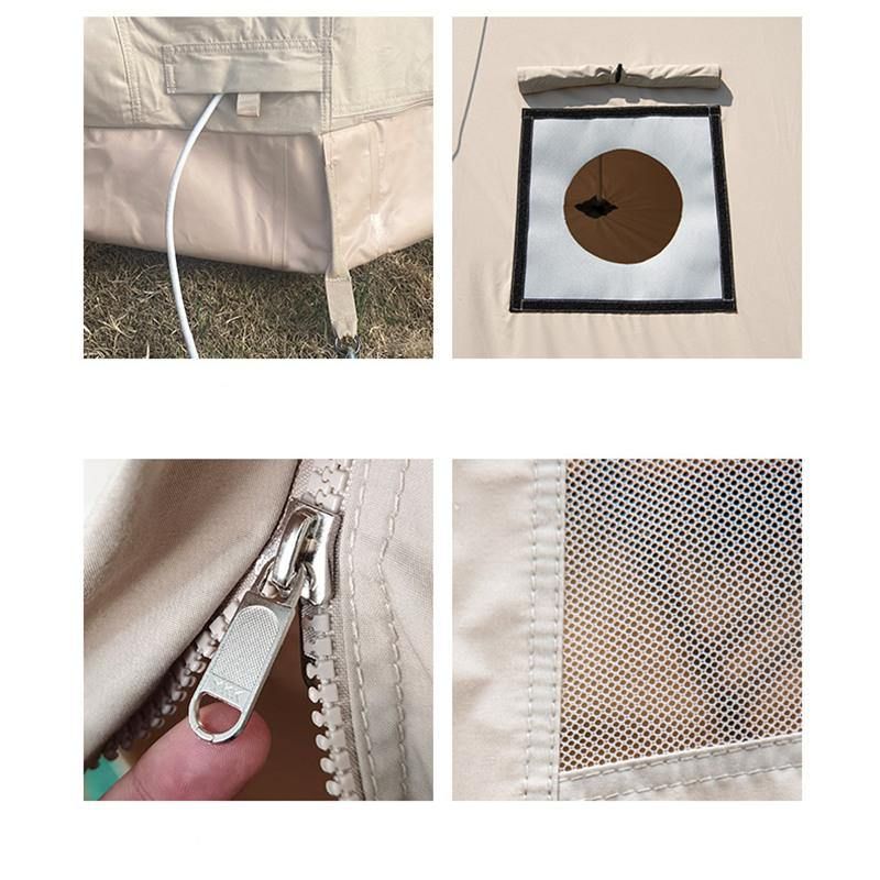 • Detalles: Cierre YKK, entrada y salida del cable de alimentación, abertura de la chimenea de tela ignífuga, pantalla de malla transpirable en la parte superior y lateral, pantalla de malla transpirable en la puerta y la ventana, todo esto pone de relieve nuestra máxima búsqueda de los detalles.