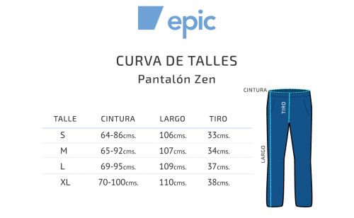 Tenía dudas con la tabla de talles, pero me ubiqué en el rango de cms de cintura de la tabla, cuya mitad estuviera mas cerca de mi medida. Soy 42 en cualquier jean y compré un m. Y quedó bien! Creo que elástico abarca varios talles más. El zen es mas amplio tanto de piernas como de elástico de cintura que el dínamo 2. Muy buena calidad los epic! Muchas gracias!